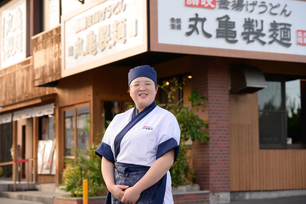 私自身は丸亀製麺に勤めて7年目。本社は、現場の声を積極的に聞き入れてくれる体制があるのがありがたいですね。私自身が常に心がけているのは笑顔です。笑顔でいれば、お店に温かい空気が流れる。だから、どんなに忙しいときでもお客様にもスタッフにも笑顔で接するようにしています。