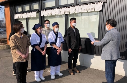 茹で麺管理表の活用率が高く、また「おいしい!」とお褒めも多かった安城店、旭川春光店は、表彰へ素直な喜びを語ってくれました。