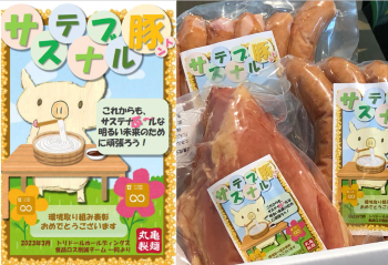 今回の授賞式の景品のハムとソーセージには、株式会社松屋フーズホールディングスと丸亀製麺が協働し飼育されている豚を使用しています。