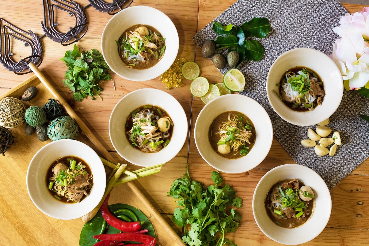 タイの水上マーケットで食べられていた小さなスープヌードルがルーツ。手軽さと美味しさ、視覚的な楽しさが人気。