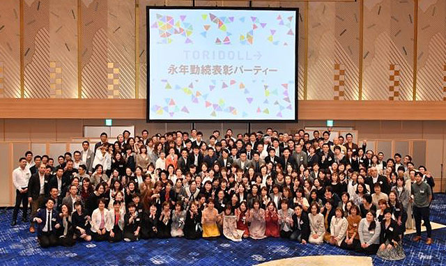 トリドールグループは、働くすべてのスタッフを対象に、感謝の気持ちを伝えることを目的とした永年勤続表彰を行っています。