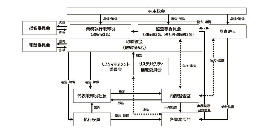 なお、リスクマネジメント委員会の事務局はサステナビリティ推進部の配下組織であるリスクマネジメント課が担っています。同課はお客様や従業員等の相談窓口や事故受付を行っており、事業におけるリスクや機会について、ステークホルダーからの要求を直接収集しております。そのため、リスクマネジメント委員会に遅滞なく課題提起を行うことが可能です。