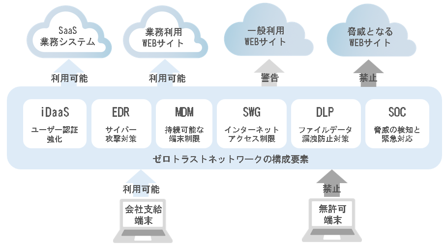 以下に示す6つの要素によりゼロトラストを実現しています。