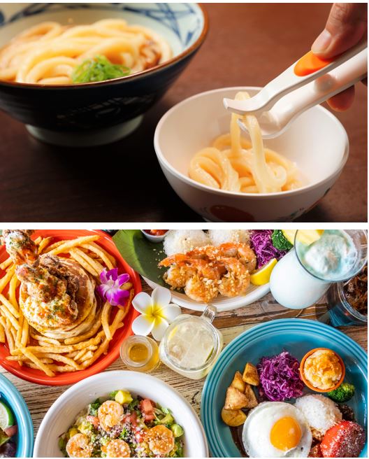 例えば、丸亀製麺では本場讃岐の風情を、コナズ珈琲ではハワイの華やかさを感じて頂けるように、またお子さまにもお使いいただきやすいようにと食器一つにも想いを込めて選択した器でお食事をご提供しています。
