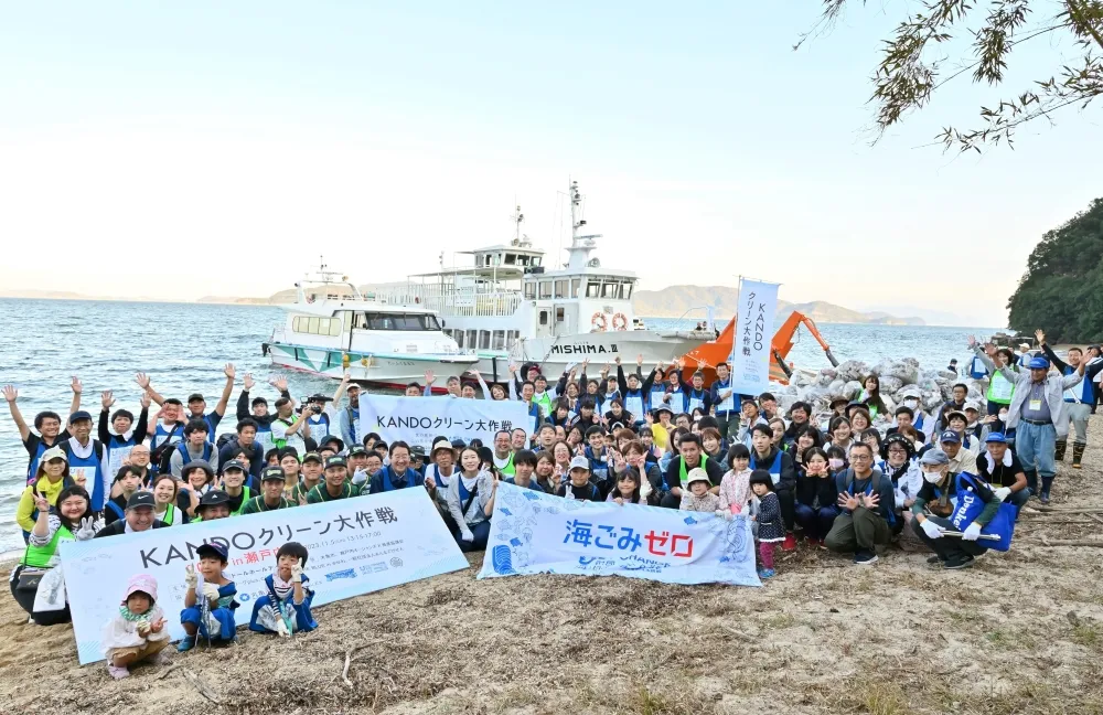そこで丸亀製麺を主体とし、トリドールグループでは2023年11月、瀬戸内海に面する4県(岡山県、広島県、香川県、愛媛県)と日本財団が共同で推進する包括的海洋ごみ対策プロジェクト「瀬戸内オーシャンズ X」にもご協力をいただき「KANDOクリーン大作戦」を実施しました。