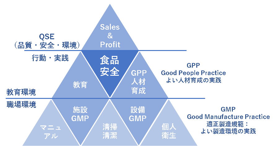私たちは、統一した食品安全文化と本ポリシーを世界の仲間と共有し、各国の食品安全と品質に係る法規制を遵守し、グローバルな基準と要件を満たす食品安全・品質管理体制を維持します