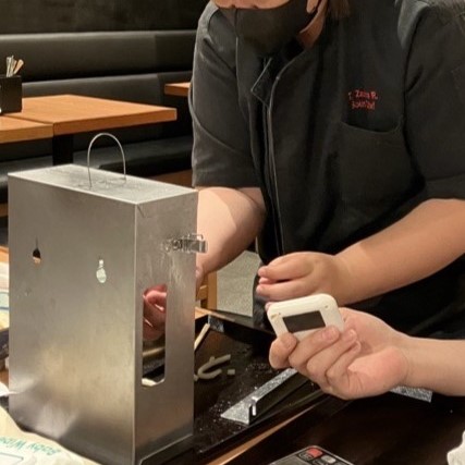 丸亀製麺では、お客さまに感動いただけるうどんの品質について、職人の感覚と経験に加え、科学的根拠をもってご提供できるよう、麺の物性試験を店舗で簡易的に実現するための機器(うどんチェッカー)を独自に開発しました。